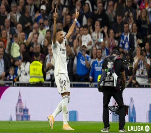 第31分钟,皇马打出精彩配合,居莱尔下底传中展现精妙脚法,皮球正好越过后卫,姆巴佩杂耍一般,将球打进。