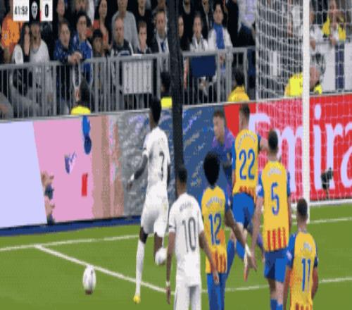 两球落后的瓦伦西亚不得不主动出击,这也给了皇马更多的机会。第42分钟,维尼修斯禁区内倒地裁判没有任何判罚,卡雷拉斯被撞倒,皇马再次获得点球。