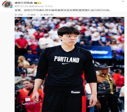 11月2日,@波特兰开拓者 官宣,波特兰开拓者队将中锋杨瀚森派至发展联盟混音队进行例行训练。